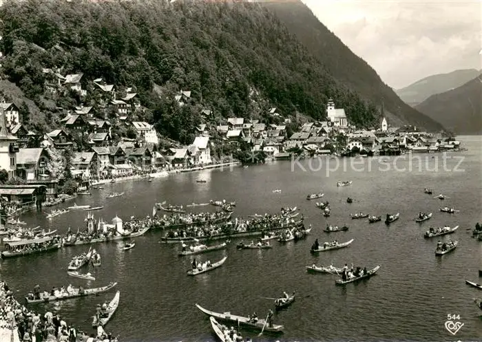 AK / Ansichtskarte Hallstadt_Bayern Fronleichnams Prozession auf dem See Hallstadt_Bayern