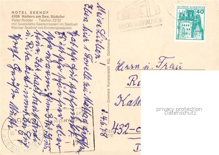 Haltern_See Fliegeraufnahme mit Seehof Seestern Seebad Seeterrassen und Stadmuehle Haltern See postalisch gelaufen 1978 Erhaltung siehe scans [WerneD78] WernPID7