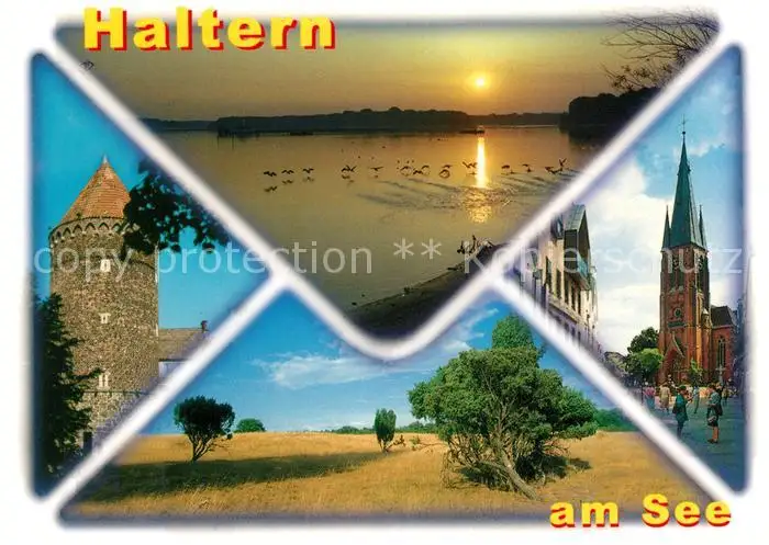 Haltern_See Kirche Stadtturm Abendstimmung Haltern See postalisch nicht gelaufen nach 1965 Erhaltung siehe scans [KathaD81] Kathoren