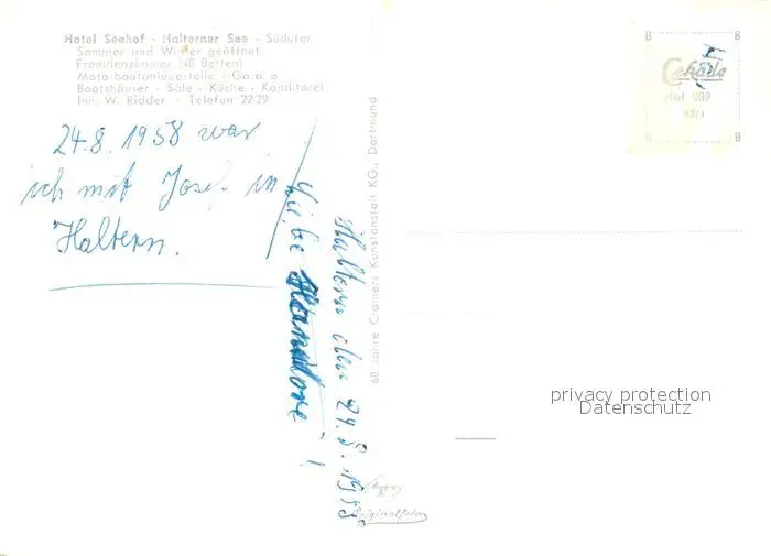 Haltern_See Walzenwehr Seehof Stadtmuehle Jugendherberge St.Anna-Kapelle Siebenteufelsturm Haltern See postalisch nicht gelaufen 1958 Erhaltung siehe scans [LiesaD40] LiesID40