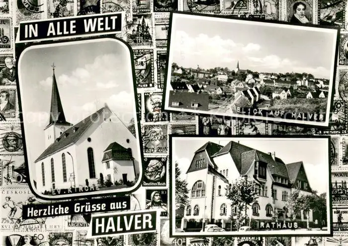 Halver Teilansicht Rathaus Ev. Kirche Halver postalisch gelaufen nach 1965 Erhaltung siehe scans [LiesaD40] LiesID40