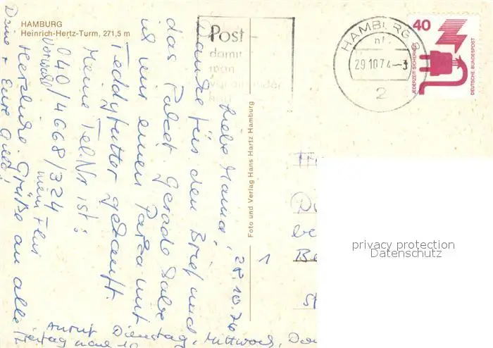 Hamburg Heinrich Hertz Turm Nachtaufnahme Hamburg postalisch gelaufen 1974 Erhaltung siehe scans [FriedD77] Frierer