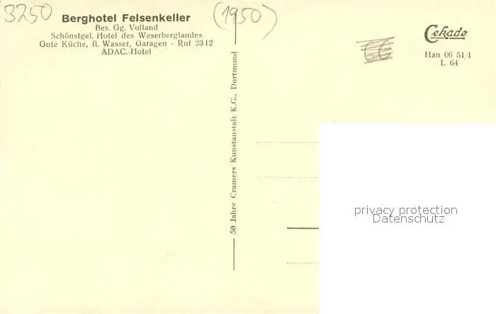 Hameln_Weser Blick vom Berghotel Felsenkeller Hameln Weser postalisch nicht gelaufen 1950 Erhaltung siehe scans [WerneD78] WernPID7
