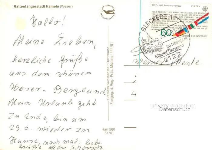 Hameln_Weser Fliegeraufnahme Hameln Weser postalisch gelaufen 1983 Erhaltung siehe scans [WerneD78] WernPID7