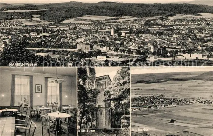 Hameln Weser Kategorie Alte Ansichtskarten Postkarten bx62244 Hameln_Weser Fliegeraufnahme Kluet Turm Berkel Hameln Weser postalisch gelaufen Erhaltung siehe scans [KathaD81]