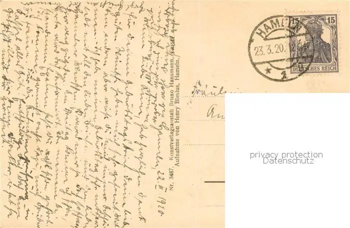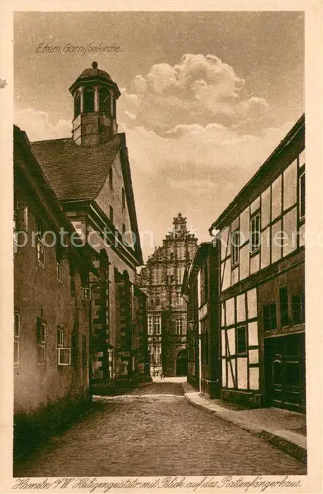 Hameln_Weser Heiligengeiststrasse mit Rattenfaengerhaus Ehem Garnisonskirche Hameln Weser postalisch nicht gelaufen 1920 Erhaltung siehe scans [WerneD78] WernPID7