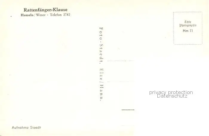 Hameln_Weser Lachsjunge Brunnen Rattenfaenger Klause Hameln Weser postalisch nicht gelaufen 1921-1965 Erhaltung siehe scans [WerneD78] WernPID7