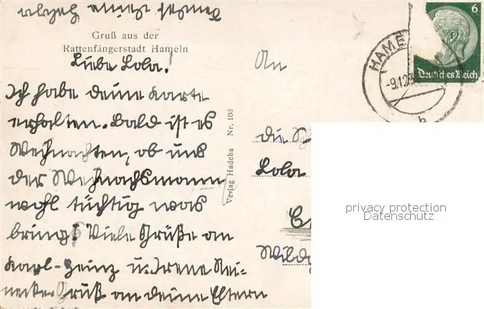 Hameln_Weser Rattenfaenger Tor Hameln Weser postalisch gelaufen 1921-1965 Erhaltung siehe scans [WerneD78] WernPID7