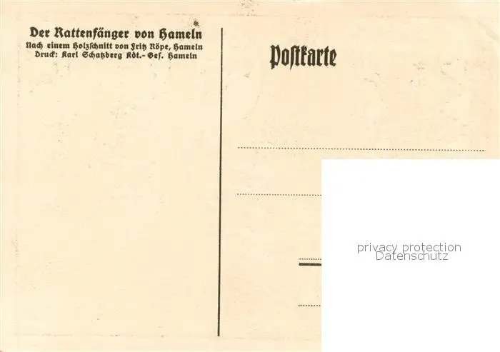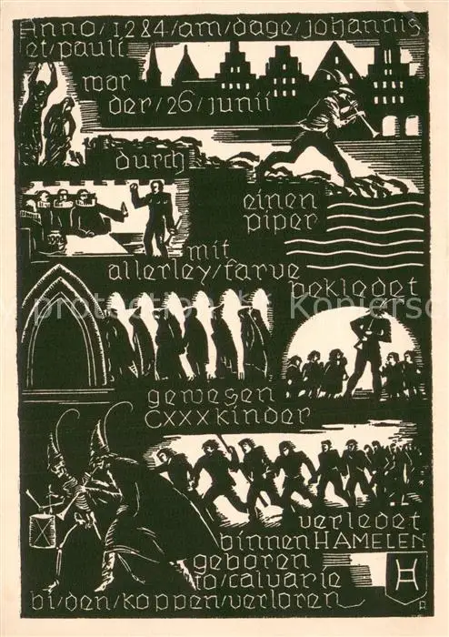 Hameln_Weser Rattenfaenger v. Hameln Holzschnitt Hameln Weser postalisch nicht gelaufen bis 1920 Erhaltung siehe scans [LiesaD40] LiesID40