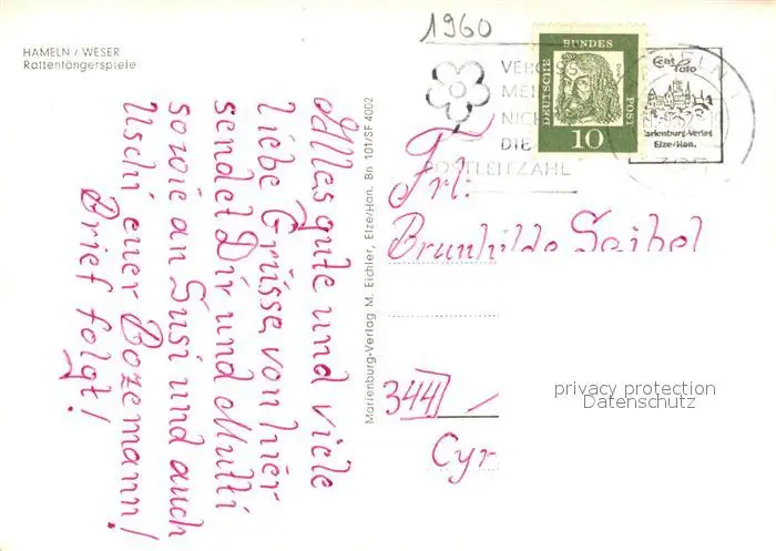 Hameln_Weser Rattenfaengerspiele Hameln Weser postalisch gelaufen 1962 Erhaltung siehe scans [NatalD47] NataID47