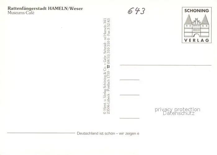 Hameln_Weser Rattenfaengerstadt Museums-Cafe Strassencafe Altstadt Hameln Weser postalisch nicht gelaufen nach 1965 Erhaltung siehe scans [FriedD77] Frierer