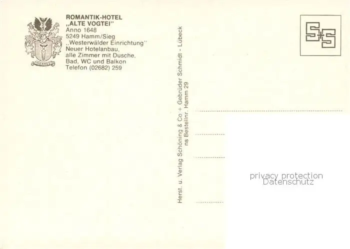 Hamm_Sieg Romantik Hotel Alte Vogtei Gastraeume Hamm_Sieg postalisch nicht gelaufen nach 1965 Erhaltung siehe scans [WerneD78] WernPID7