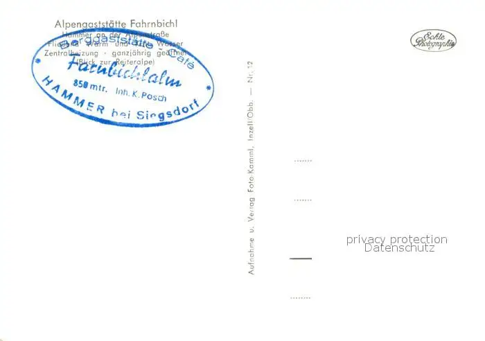 Hammer_Siegsdorf Alpengaststaette Fahrnbichl Hammer Siegsdorf postalisch nicht gelaufen 1921-1965 Erhaltung siehe scans [WerneD78] WernPID7