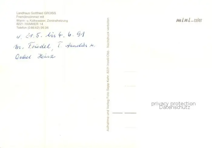 Hammer_Siegsdorf Landhaus Gottfried Groiss Hammer Siegsdorf postalisch gelaufen 1991 Erhaltung siehe scans [WerneD78] WernPID7