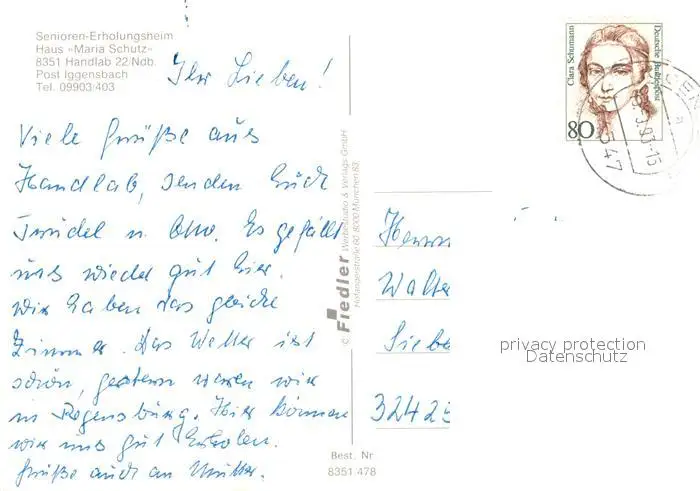 Handlab Senioren Erholungsheim Maria Schutz Speisesaal Aufenthaltsraum Wassertretanlage Panorama Handlab postalisch gelaufen 1993 Erhaltung siehe scans [WerneD78] WernPID7