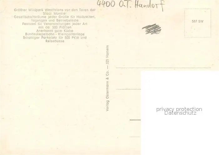 Handorf_Muenster Wildpark Restaurant Haus Proebsting Handorf_Muenster postalisch nicht gelaufen 1921-1965 Erhaltung siehe scans [FriedD77] Frierer