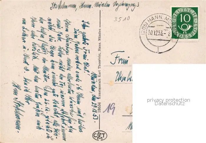 Hann._Muenden in alter Zeit Hann. Muenden postalisch gelaufen 1953 Erhaltung siehe scans [FriedD77] Frierer