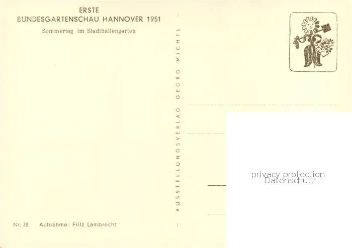 Hannover Erste BUGA Hannover 1951 Sommertag im Stadthallengarten Hannover postalisch nicht gelaufen 1951 Erhaltung siehe scans [WerneD78] WernPID7