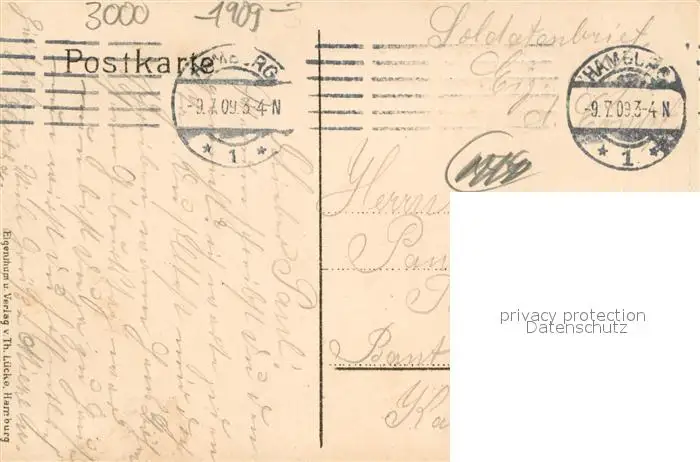 Hannover Flagge Soldatenbrief Hannover postalisch gelaufen 1909 Erhaltung siehe scans [WerneD78] WernPID7