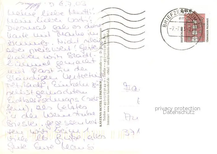 Hannover Kastens Hotel Luisenhof Rezeption Zimer Buffet Hannover postalisch gelaufen 2003 Erhaltung siehe scans [WerneD78] WernPID7