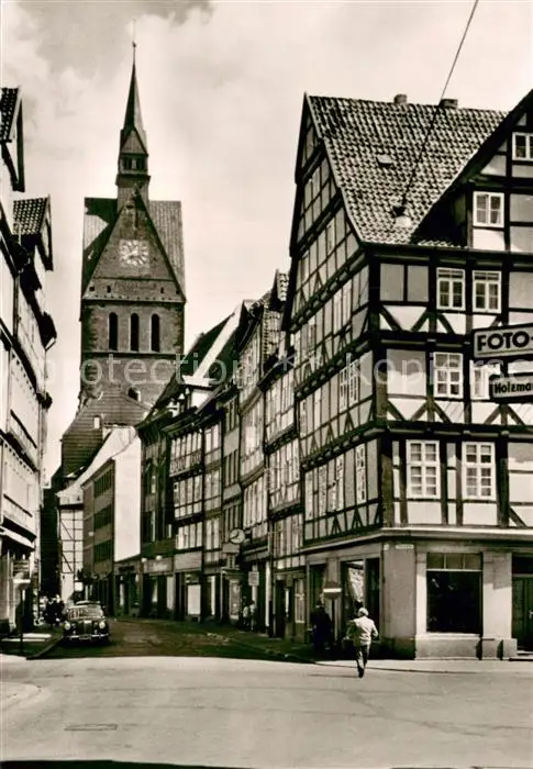 AK / Ansichtskarte Hannover Kramerstrasse u. Turm d. Marktkirche Fachwerkhaeuser Hannover