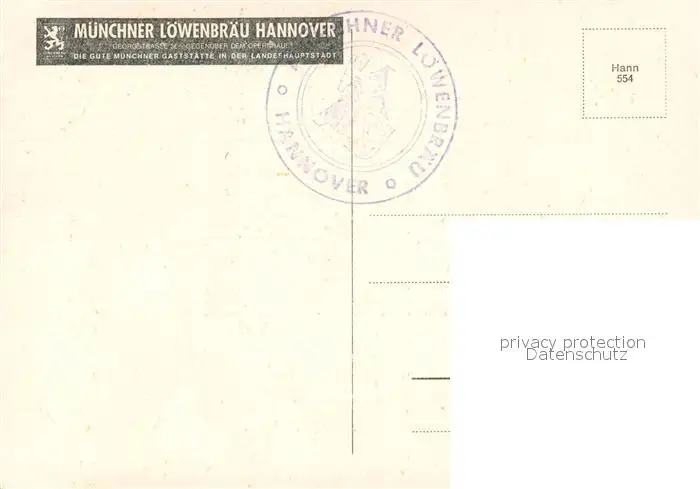 Hannover Muenchner Loewenbraeu Gaststube Hannover postalisch nicht gelaufen nach 1965 Erhaltung siehe scans [WerneD78] WernPID7