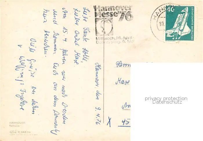 Hannover Rathaus Fliegeraufnahme Hannover postalisch gelaufen 1976 Erhaltung siehe scans [WerneD78] WernPID7