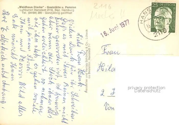 Hanstedt_Nordheide Waldhaus Dierke Innenansicht Hanstedt_Nordheide postalisch gelaufen 1972 Erhaltung siehe scans [LiesaD40] LiesID40