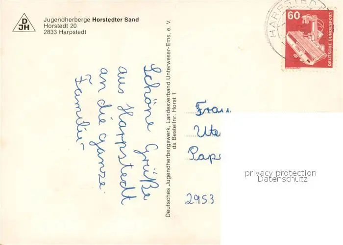 Harpstedt Jugendherberge Horstedter Sand Harpstedt postalisch gelaufen nach 1965 Erhaltung siehe scans [WerneD78] WernPID7
