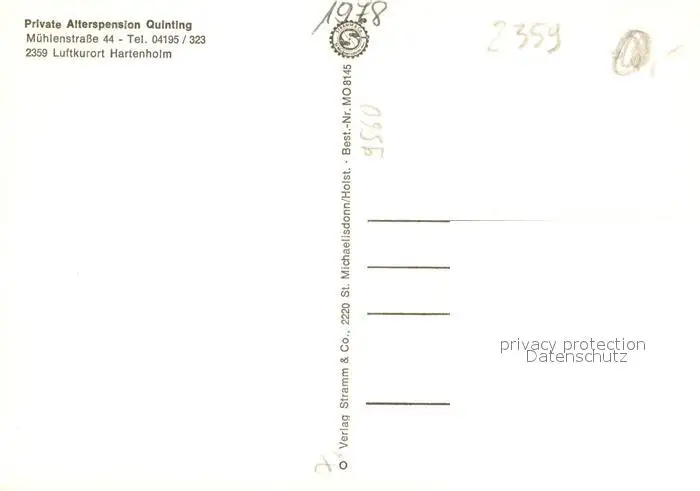 Hartenholm Private Alterspension Quinting Zimmer Terrasse Seeblick Hartenholm postalisch nicht gelaufen nach 1965 Erhaltung siehe scans [WerneD78] WernPID7