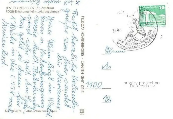 Hartenstein_Zwickau Erholungsheim Aktionseminar Hartenstein_Zwickau postalisch gelaufen nach 1965 Erhaltung siehe scans [PaolaD17] PaolPID1