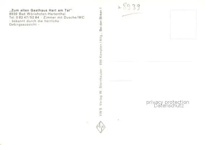 Hartenthal Gaststaette "Zum alten Gasthaus Hart am Tal" Hartenthal postalisch nicht gelaufen nach 1965 Erhaltung siehe scans [FriedD77] Frierer
