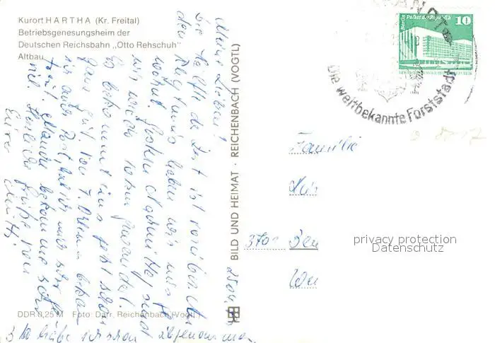 Hartha_Oederan Betriebsgenesungsheim der Dt Reichsbahn Otto Rehschuh Altbau Hartha Oederan postalisch gelaufen nach 1965 Erhaltung siehe scans [WerneD78] WernPID7