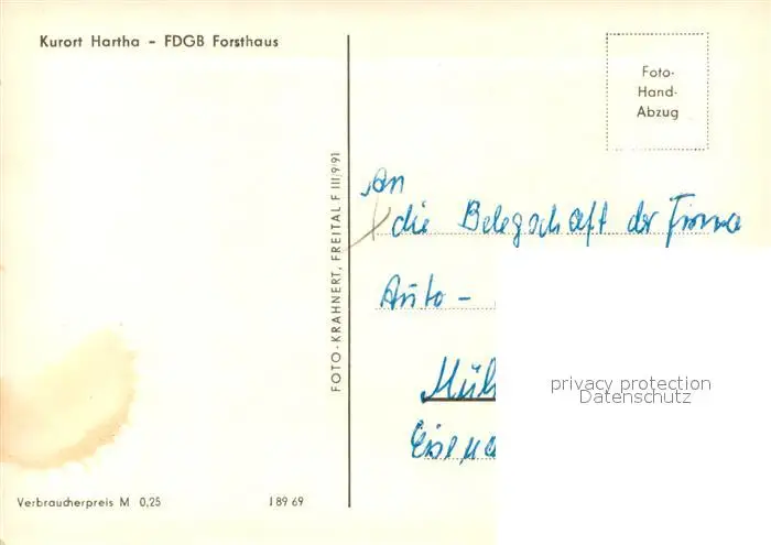 Hartha_Tharandt FDGB Forsthaus Hartha Tharandt postalisch nicht gelaufen nach 1965 Erhaltung siehe scans [WerneD78] WernPID7