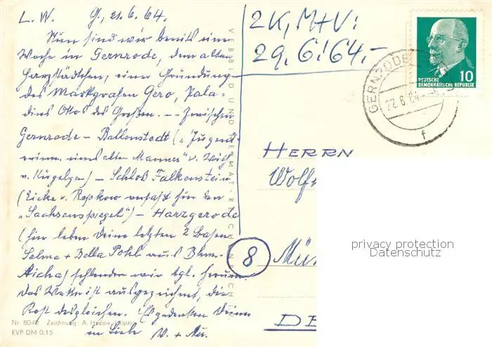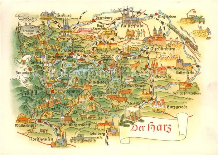 Harz_Region Gebietskarte Harz Region postalisch gelaufen 1964 Erhaltung siehe scans [FriedD77] Frierer