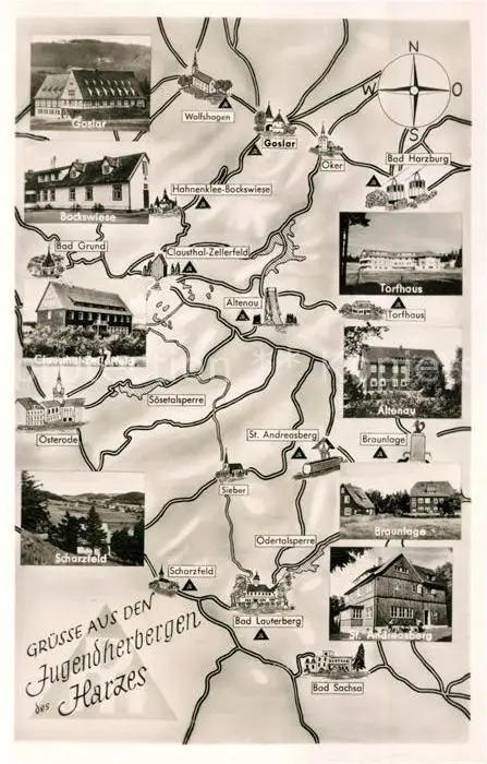 Harz_Region Jugendherbergen im Harz Gebietskarte Harz Region postalisch nicht gelaufen 1921-1965 Erhaltung siehe scans [WerneD78] WernPID7