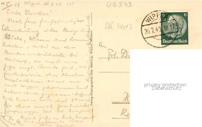 Harz_Region Ravestalklippe und Kaufmannsmuehle im Wippertal Harz Region postalisch gelaufen 1940 Erhaltung siehe scans [WerneD78] WernPID7