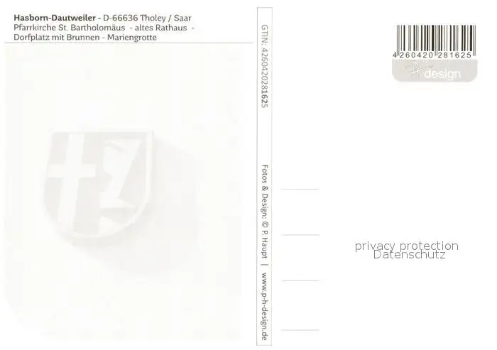 Hasborn Dautweiler_Tholey Kategorie Alte Ansichtskarten Postkarten kn98510 Hasborn Dautweiler_Tholey Pfarrkirche St Bartholomaeus Rathaus Dorfplatz Brunnen Mariengrotte postalisch nicht gelaufen nach 1965 Erhaltung siehe scans [FriedD77]