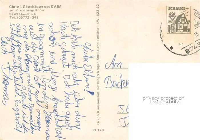 Haselbach_Rhoen Christliche Gaestehaeuser des CVJM am Kreuzberg Haselbach Rhoen postalisch gelaufen nach 1965 Erhaltung siehe scans [FriedD77] Frierer