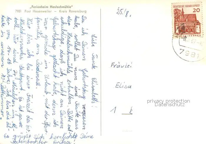 Hasenweiler Ferienheim Haslachmuehle Hasenweiler postalisch gelaufen 1967 Erhaltung siehe scans [FriedD77] Frierer