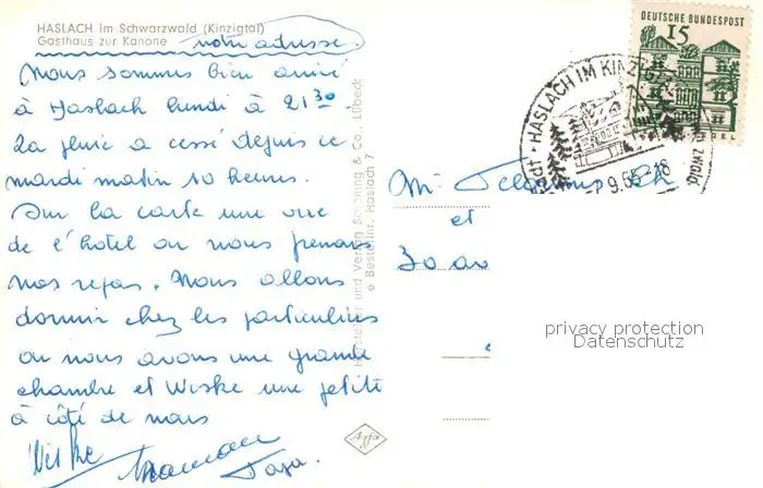 Haslach_Kinzigtal Kategorie Alte Ansichtskarten Postkarten bx73825 Haslach_Kinzigtal Gasthaus zur Kanone Haslach_Kinzigtal postalisch gelaufen 1965 Erhaltung siehe scans [PaolaD17]