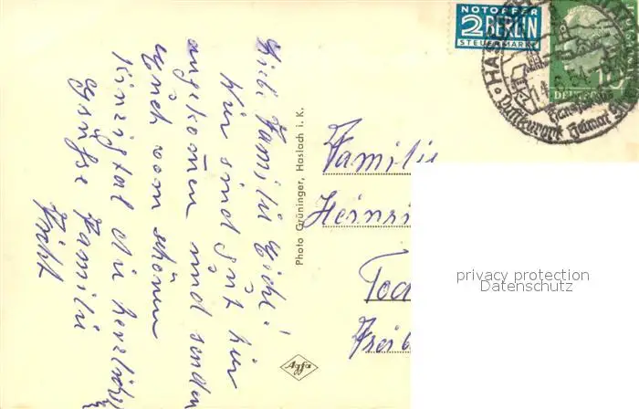 Haslach_Kinzigtal Stadtansicht vom Waldrand aus Haslach_Kinzigtal postalisch gelaufen 1954 Erhaltung siehe scans [FriedD77] Frierer