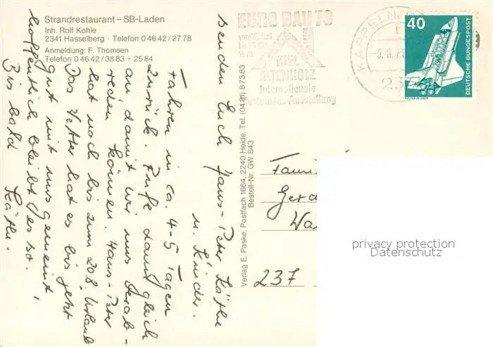 Hasselberg_Ostsee Campingplatz Hasselbarg Strandrestaurant Strand Hasselberg_Ostsee postalisch gelaufen 1978 Erhaltung siehe scans [LiesaD40] LiesID40