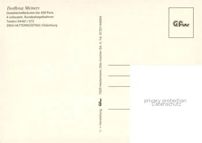 Hatterwuesting Dorfkrug Meiners Gesellschaftsraum Restaurant Kegelbahnen Hatterwuesting postalisch nicht gelaufen nach 1965 Erhaltung siehe scans [FriedD77] Frierer