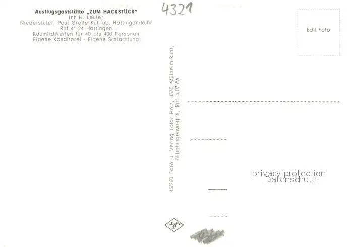 Hattingen_Ruhr Ausflugsgaststaette Zum Hackstueck Innen und Aussen mit Terrasse Hattingen Ruhr postalisch nicht gelaufen 1921-1965 Erhaltung siehe scans [LiesaD40] LiesID40