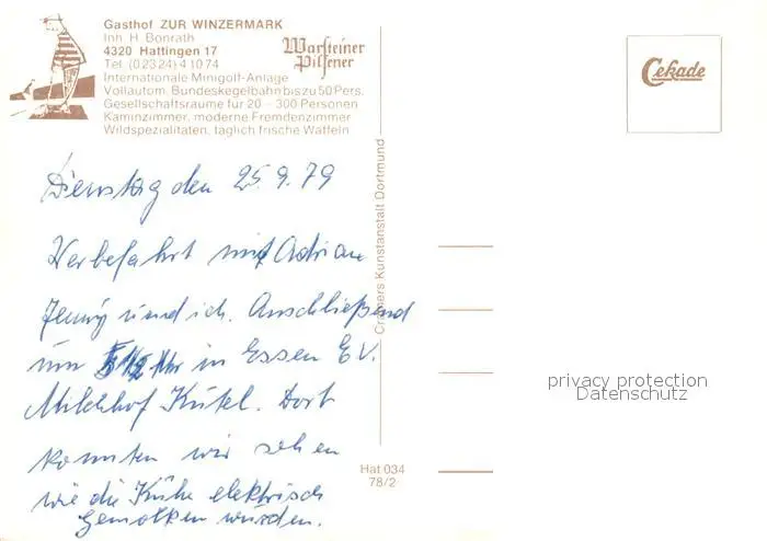 Hattingen_Ruhr Gasthof Zur Winzermark Hattingen Ruhr postalisch nicht gelaufen 1979 Erhaltung siehe scans [PaolaD17] PaolPID1