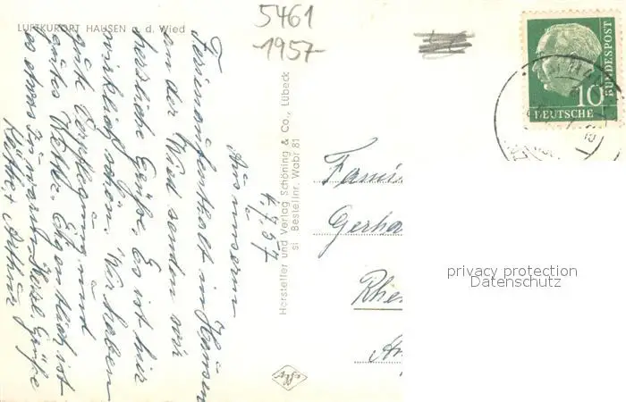 Hausen_Wied Ortsansicht Hausen Wied postalisch gelaufen 1957 Erhaltung siehe scans [WerneD78] WernPID7