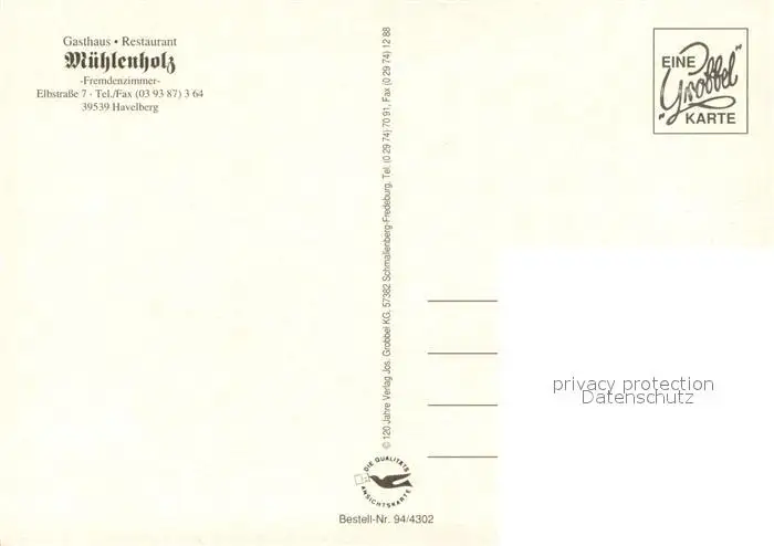 Havelberg Gasthaus Restaurant Muehlenholz Gastraeume Bar Terrasse Zimmer Havelberg postalisch nicht gelaufen nach 1965 Erhaltung siehe scans [WerneD78] WernPID7