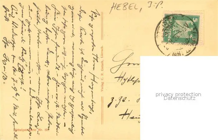 Hebel_Johann_Peter Der Wegweifer Nr.10 Hebel_Johann_Peter postalisch gelaufen 1926 Erhaltung siehe scans [IrynaD87] Iryn PID