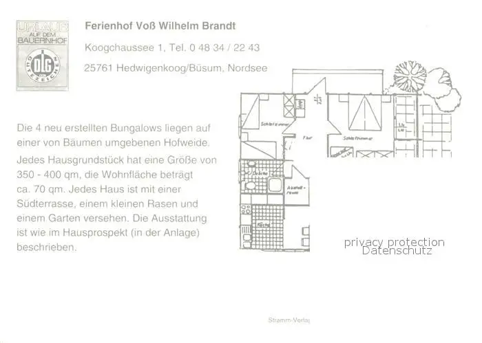 Hedwigenkoog Ferienhof Voss Wilhelm Brandt Hedwigenkoog postalisch nicht gelaufen nach 1965 Werbekarte (keine Postkarte) Erhaltung siehe scans [WerneD78] Werbekarte (keine Postkarte) WernPID7